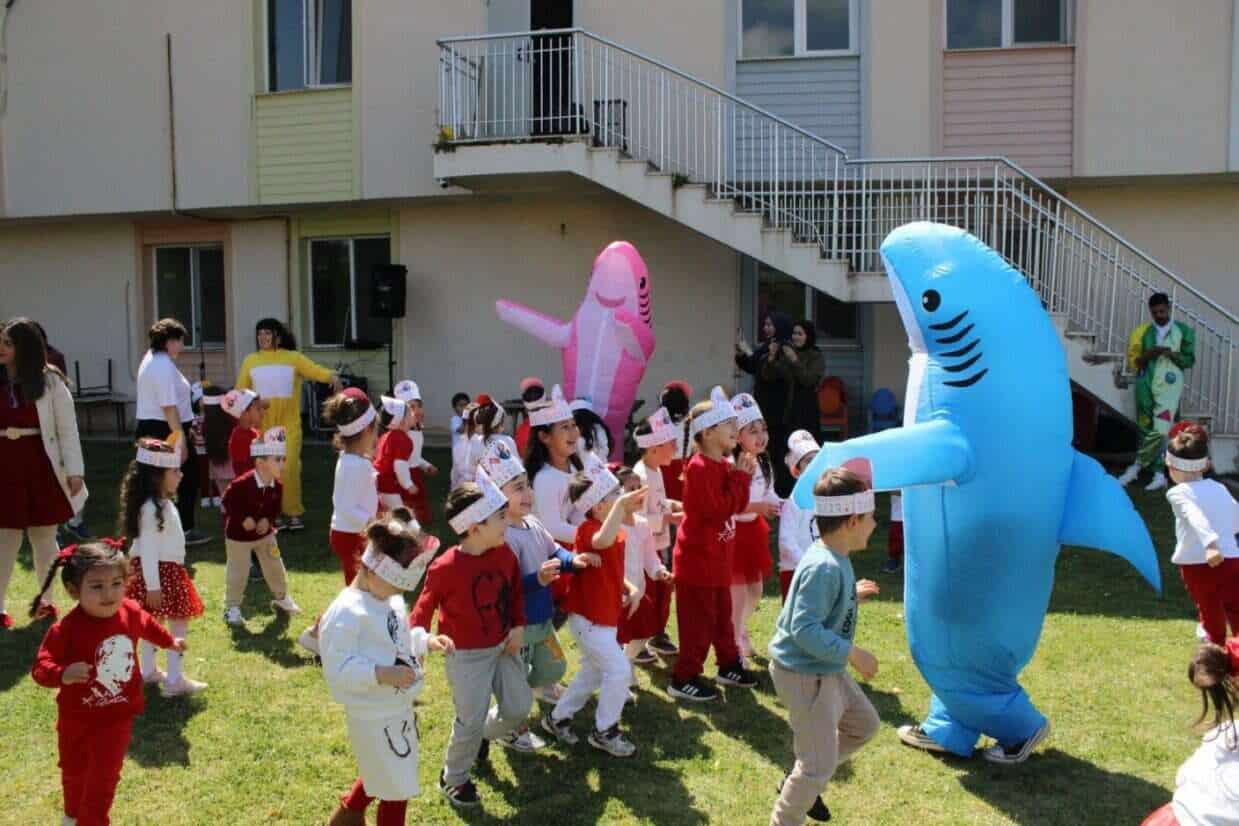 Müzik eşliğinde gerçekleşen kutlamalarda çocuklar bayramın neşesini doyasıya yaşadı. Renkli görüntülerin ortaya çıktığı programda miniklerin mutluluğu dikkat çekti.