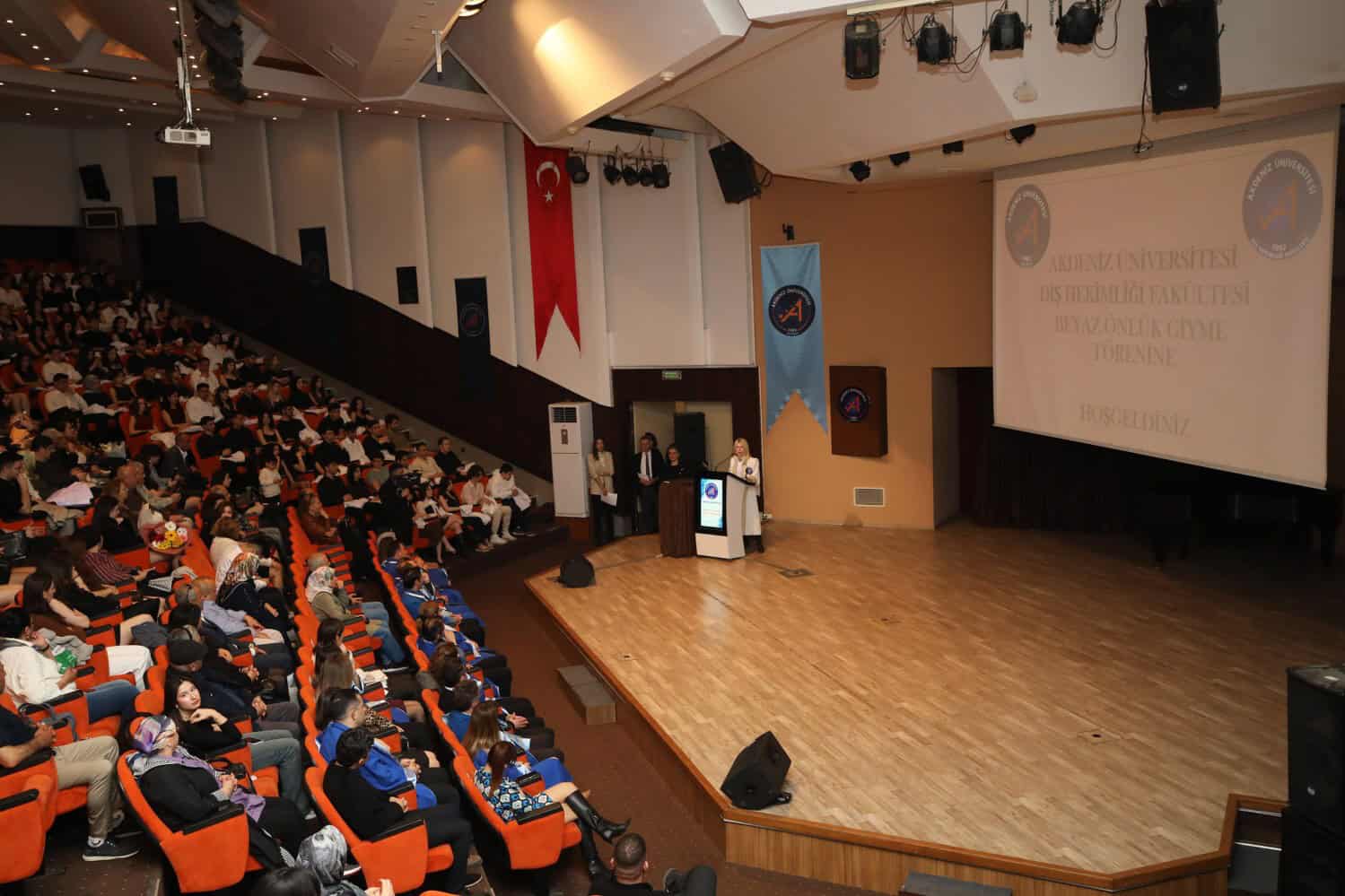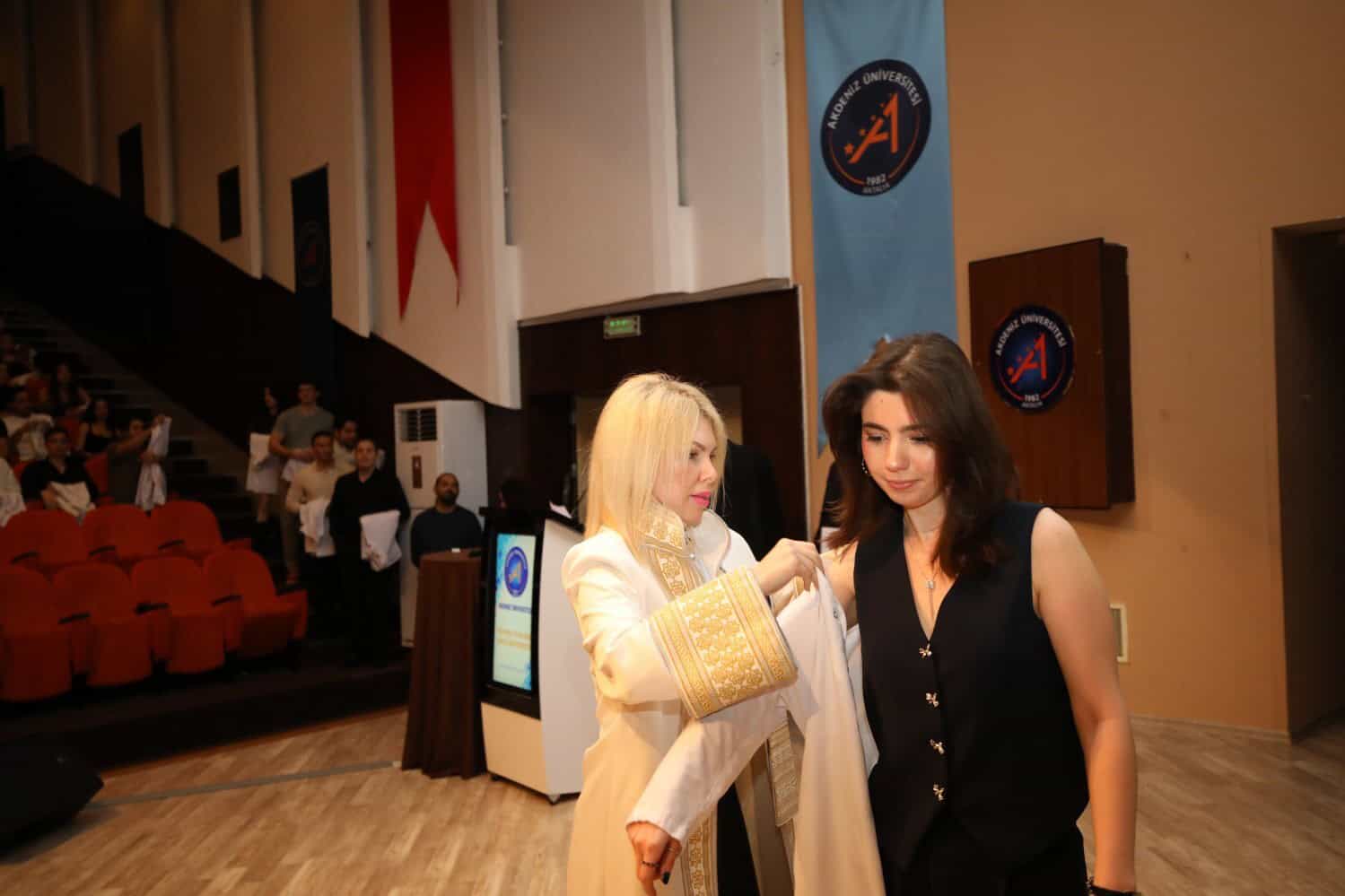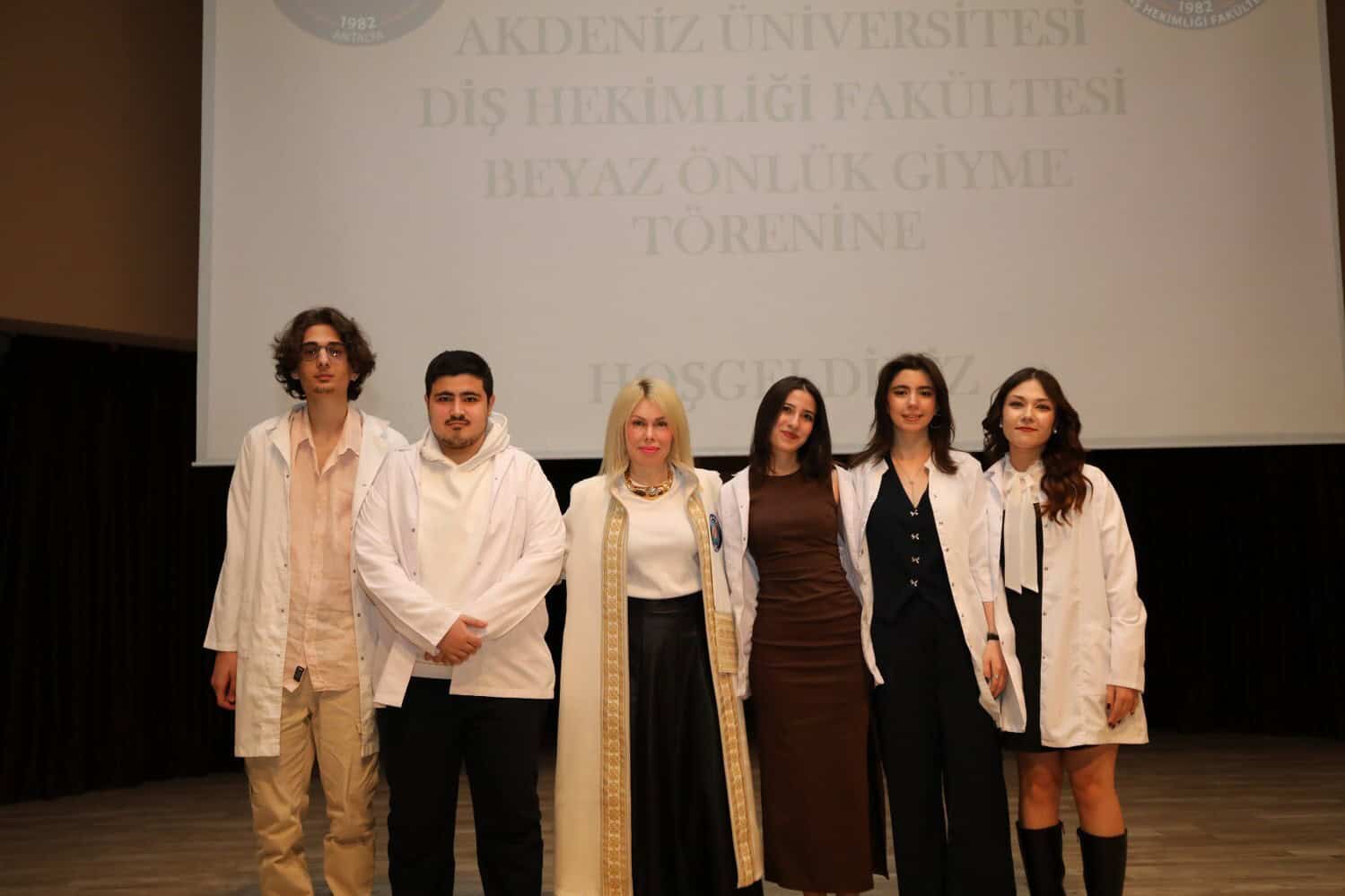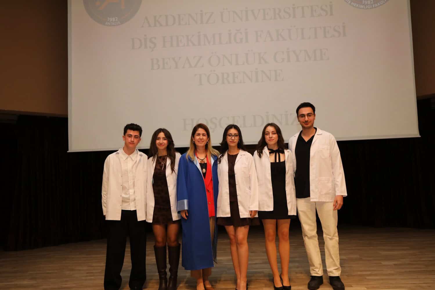 Akdeniz Üniversitesi Diş Hekimliği Fakültesi üçüncü sınıf öğrencileri, düzenlenen törenle beyaz önlüklerini giydi. Atatürk Konferans Salonu’nda gerçekleşen etkinliğe Rektör Prof. Dr. Özlenen Özkan, Rektör Yardımcısı Prof. Dr. Ayşe Gülbin Arıcı, Fakülte Dekanı Prof. Dr. Alper Kuştarcı, dekan yardımcıları, öğretim üyeleri, öğrenciler ve aileleri katıldı.