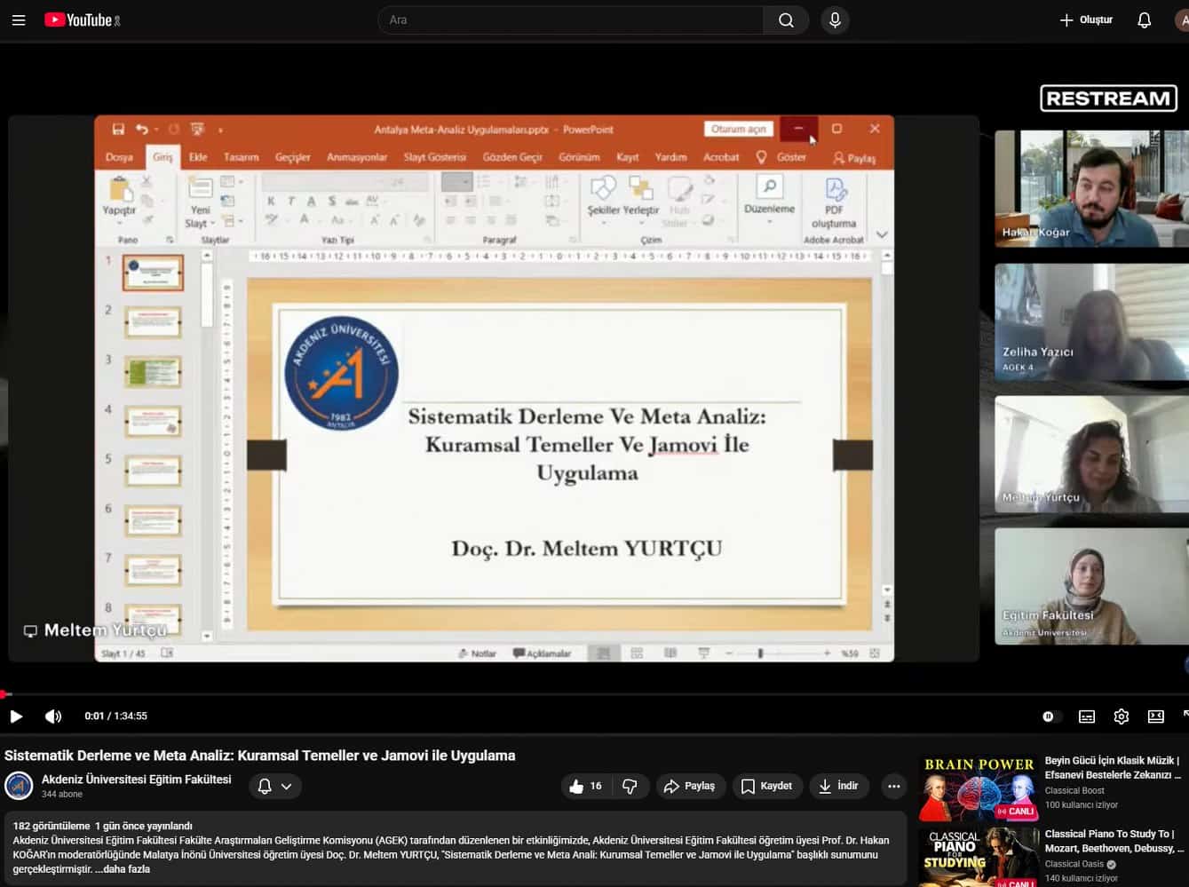 Canlı olarak Akdeniz Üniversitesi Eğitim Fakültesi’nin YouTube kanalı üzerinden yayımlanan oturumda, katılımcılar konuşmacılara doğrudan soru yöneltme imkânı buldu. Türkiye’nin farklı üniversitelerinden çok sayıda araştırmacı ve öğrenci etkinliğe aktif olarak katıldı. Etkinliğin kaydı, eğitim fakültesinin YouTube kanalında erişime açık durumda.