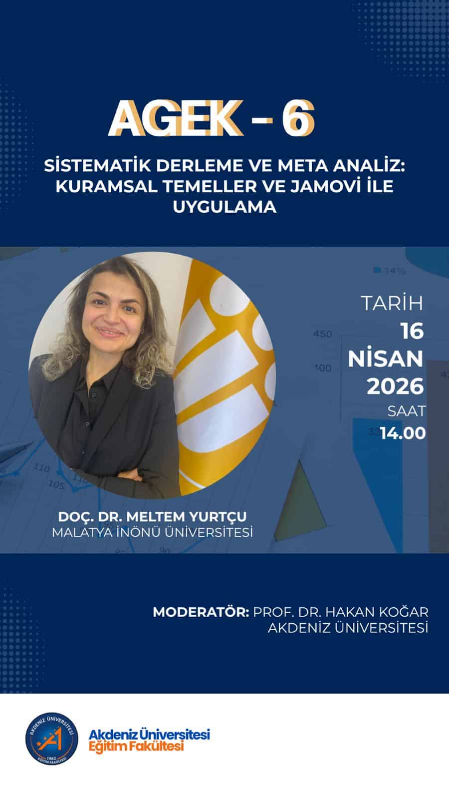 Akdeniz Üniversitesi Eğitim Fakültesi tarafından düzenlenen Akademik Gelişim ve Eğitim Kurulu (AGEK) etkinlik serisinin altıncı oturumu, çevrim içi platformda ilgiyle tamamlandı. Katılımcılar arasında araştırmacılar, lisansüstü öğrenciler ve akademisyenler yer aldı.