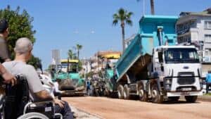 Alanya Belediyesi, Atatürk Caddesi’nde başlattığı altyapı ve üstyapı yenileme çalışmalarını yoğun şekilde sürdürüyor. Belediye Başkanı Osman Tarık Özçelik, Başkan Yardımcısı Murat Levent Koçak ve Başkan Danışmanı Sadık Dizdaroğlu ile birlikte Kale Market karşısında devam eden sıcak asfalt serim işlemlerini yerinde inceledi.