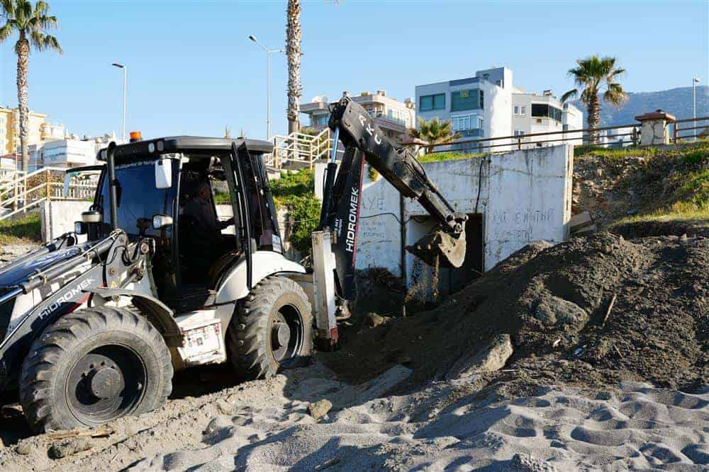 Denizden gelen çeşitli atıkların sahile vurması ve bazı alt geçitlerin kum ile dolmasının ardından belediye ekipleri, iş makineleri ve temizlik araçlarıyla hızlı bir şekilde müdahale etti. Sahil hattında biriken atıklar titizlikle toplanırken, alt geçitlerdeki kum ve malzemelerin de temizliği sağlanıyor.