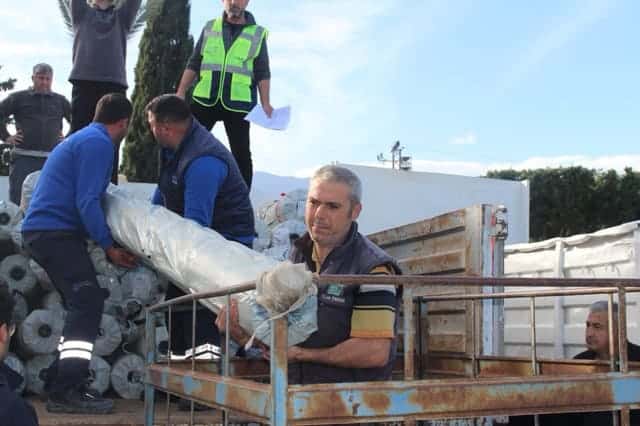 Antalya Büyükşehir Belediyesi, Kumluca ve Finike ilçelerinde yaşanan hortum ve fırtına nedeniyle seraları zarar gören üreticilere destek sağladı. Tarımsal Hizmetler Dairesi Başkanlığı ekipleri tarafından gerçekleştirilen hasar tespit çalışmalarının ardından, afetten etkilenen 6 mahallede toplam 145 bin metrekare sera naylonu üreticilere teslim edildi.