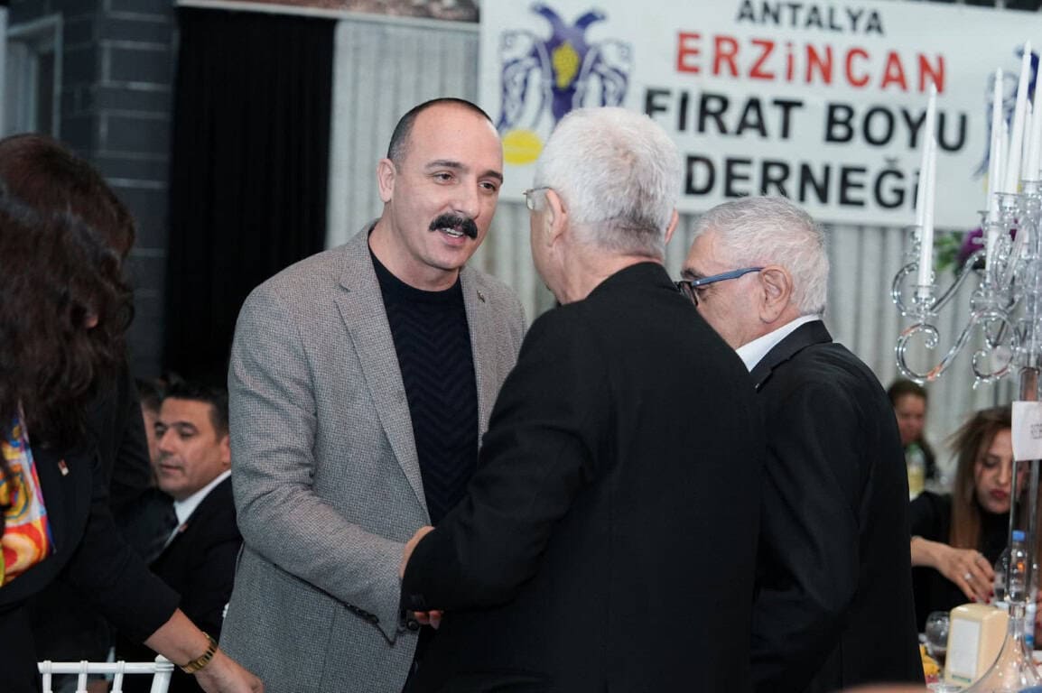 Konyaaltı Belediye Başkanı Cem Kotan, Antalya Erzincan Fırat Boyu Kültür ve Sosyal Yardımlaşma Derneği tarafından düzenlenen dostluk ve dayanışma gecesinde yer aldı. Geceye, CHP Antalya İl Başkanı Nail Kamacı, ilçe başkanları, il yöneticileri ve ilçe belediye başkan vekilleri de katılım gösterdi. Katılımcılar, birlik ve beraberlik mesajları vererek toplumsal dayanışmanın önemine dikkat çekti.